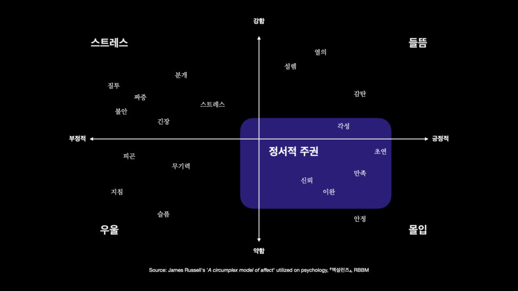 Source: Source: James Russell’s ‘A circumplex model of affect’ utilized on psychology, 『엑설런스(ExzellenZ)』