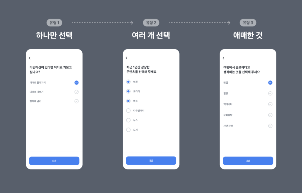 이번 아티클을 거칠게 요약하면 이렇습니다. 디지털 인터페이스에서 ‘관습적 디자인’이란 사용자들이 오랜 시간 학습하고 익숙해진 상호작용 패턴을 의미합니다. 대표적으로 하나만 선택할 때에 ‘라디오 버튼’, 여러 가지를 선택할 때 ‘체크박스’를 사용하는 것이 그러한 관례입니다. 토스에서 이러한 관습적 디자인을 UT로 검증해 보니 15명 중 13명이 “사용자는 버튼의 모양보다는 질문의 맥락에 따라 행동하기 때문에 원형의 라디오 버튼을 반드시 사용할 필요는 없고 맥락을 제공하는 것이 중요하다”입니다.