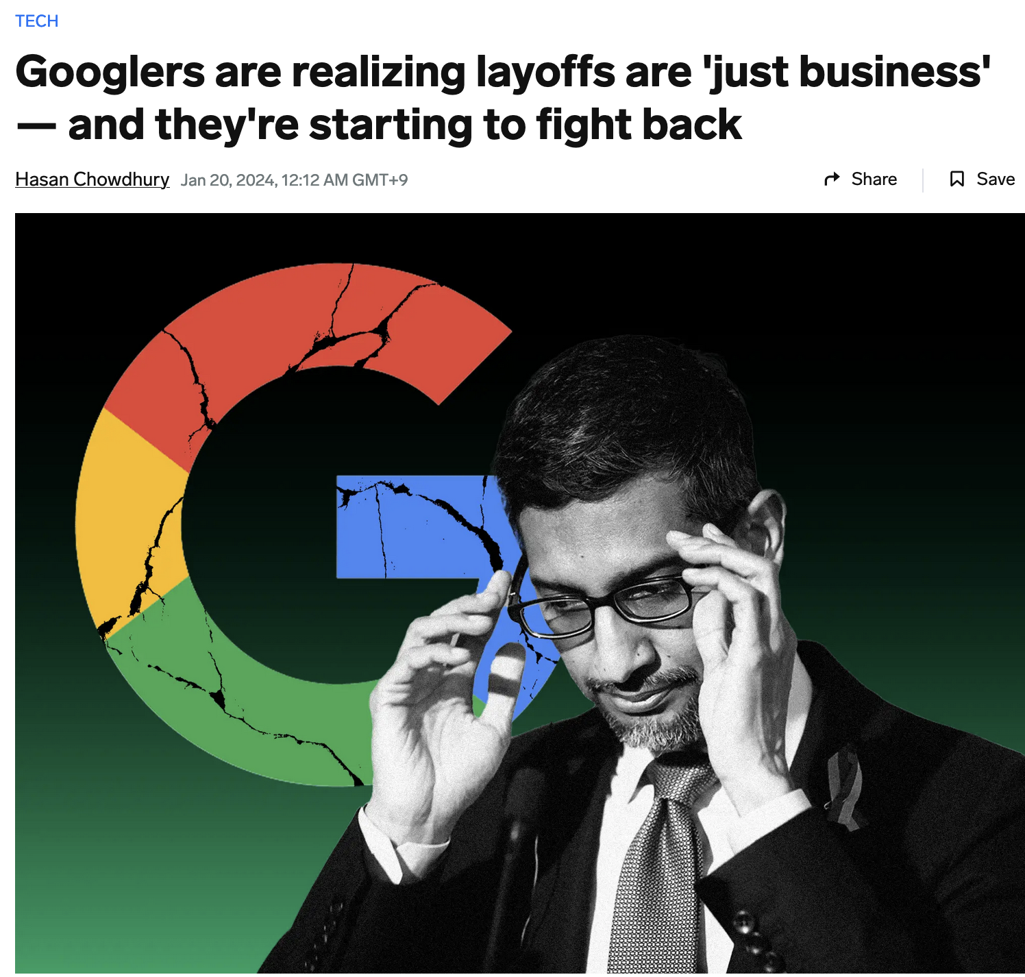 - Google 문화는 지난해 첫 대규모 해고로 크게 변했으며, 그는 몇 달 동안 이 불가피한 사건에 대비해왔음.