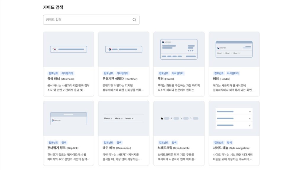 - 디지털 정부서비스 아이덴티티 요소 및 재사용 가능한 구성 요소 기반의 가이드 제공