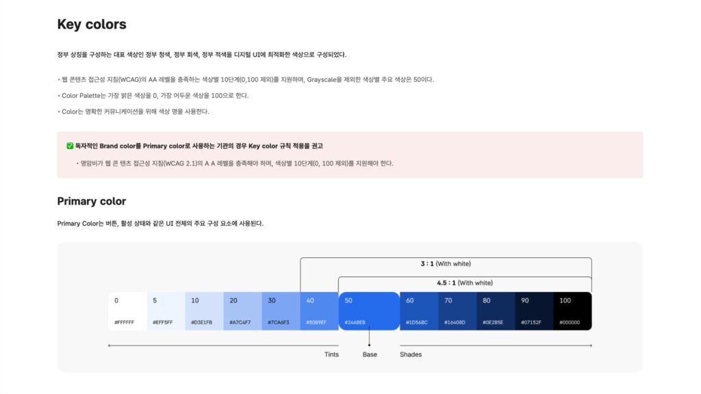 - 스타일, 컴포넌트, 기본 패턴, 서비스 패턴 등 구성 요소별 접근성 가이드라인 제공