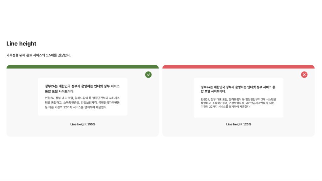 기업에서 디자인 가이드라인을 만들 때마다 생각의 속도가 더뎌지는 지점들이 있습니다. 비즈니스에 적합한가, 달라지는 기술요소를 반영할 여력이 있는가, 이해관계자들이 바로 사용할 수 있는가. 묘수는 없었습니다. 가이드라인은 현장의 목소리를 들으며 업데이트해나가야만 생명력과 효용성을 갖습니다. 대한민국 공공 서비스의 디지털 경험이 더 나아지는 시작점이라는 생각으로 참여했고 계속 의견을 더 할 생각입니다.