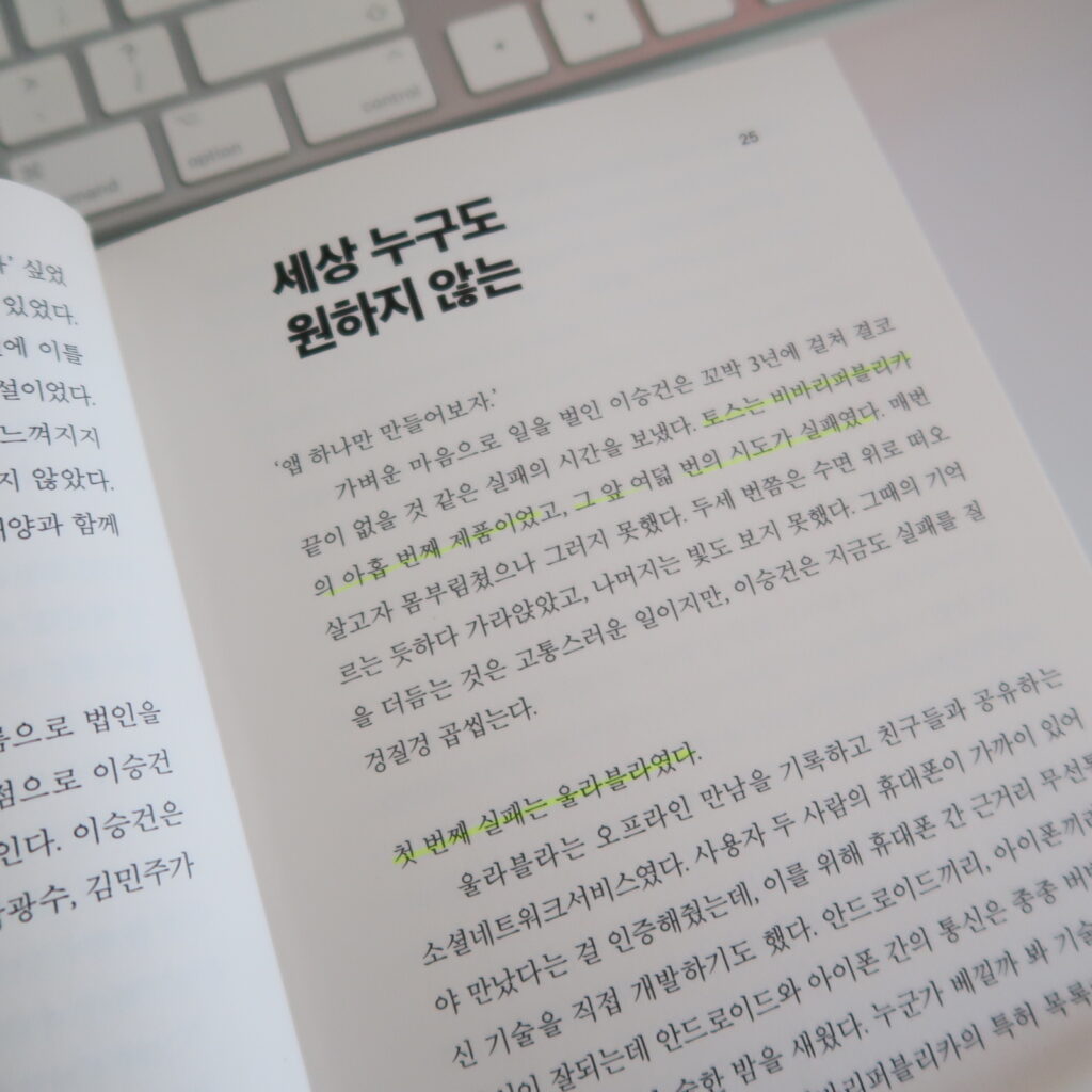 그 이유가 무엇일까, 저는 궁금했습니다. 토스가 유명해지기 전부터 이승건 님과 비바리퍼블리카라는 회사를 우연히 접했기 때문입니다. 퍼블리에서 주최한 행사를 통해 이승건 님 이야기를 듣고 나서도 치과의사가 왜 창업가로 선을 넘으려는지 공감하기 어려웠으니까요. 유난한 도전에는 그 이야기가 담겨있습니다.