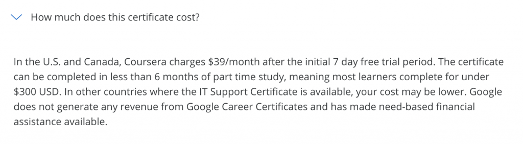 - 구글의 온라인 러닝 플랫폼인 Coursera(Google UX Design 전문 자격증) 코스 기준으로 가격을 예상해보자면